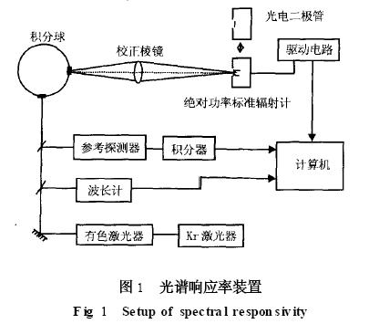 如果不滿足以上4 個條件, (6) 式將不適用。為了提高光譜分辨率, 要求雙單色儀的光譜帶寬僅在幾納米內(nèi), 其結(jié)果是僅有幾毫瓦的激光功率可以利用。這對一個絕對輻射計同光電二極管直接比較是行不通的, 因此必須在其中間加入更靈敏的二級標準作為傳遞。